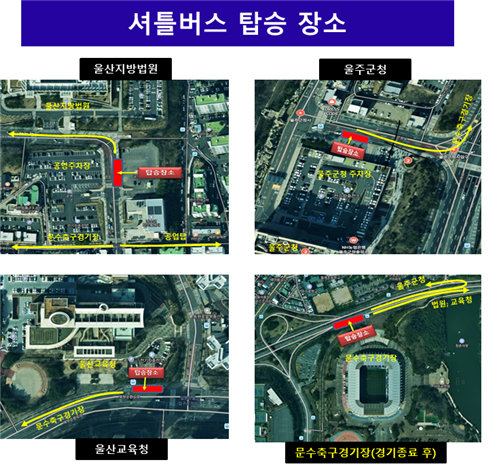 - 경기종료 후 : 경기종료 후(문수축구경기장 북측 도로변) ~ 1시간